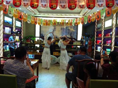 此次盛会不仅邀请了嘉兴当地资深茶人和业内人士,更是吸引了来自四面八方茶客的到访。活动当天现场人山人海,在优雅的四般闲事表演中,品鉴茶圣居2014新茶。