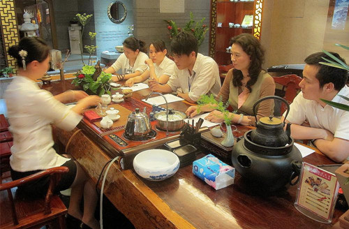 以茶待客是中华传统礼仪,粗看起来,用开水泡茶人人皆会,学问不大,其实不然。一等奖获得者魏兰说:“很多人认为,抓一把茶叶冲入开水就是泡茶,其实表演性的茶艺包涵了柔美的动作,注重美感,而待客性的茶艺较为随意一些,根据每个人不同的口感泡出浓淡不同的味道。”