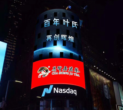 茶圣居5.10纳斯达克大屏展播:放眼国际、震撼全球。