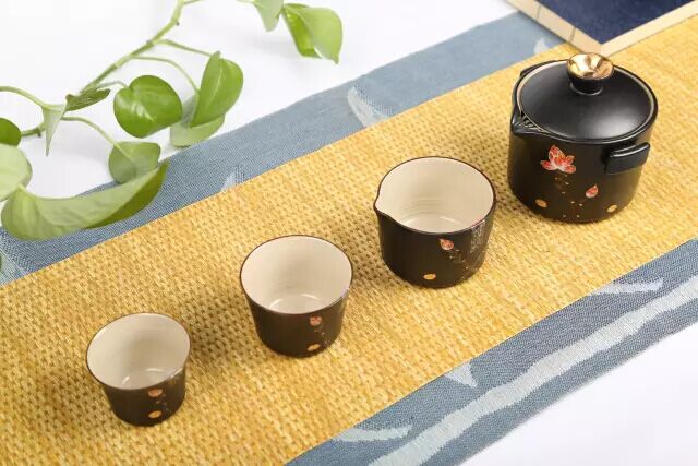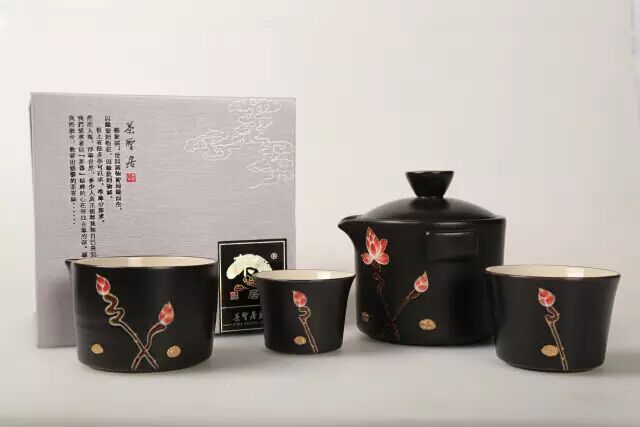 茶圣居合家欢杯组产自台湾,黑釉与24K金的完美结合,手绘荷花,工艺考究,典雅大方。缔造了独特的美,简约而不简单,复古而不陈旧,蕴藏古典韵味的中国时尚之风,让现代茶友乐享高品位。