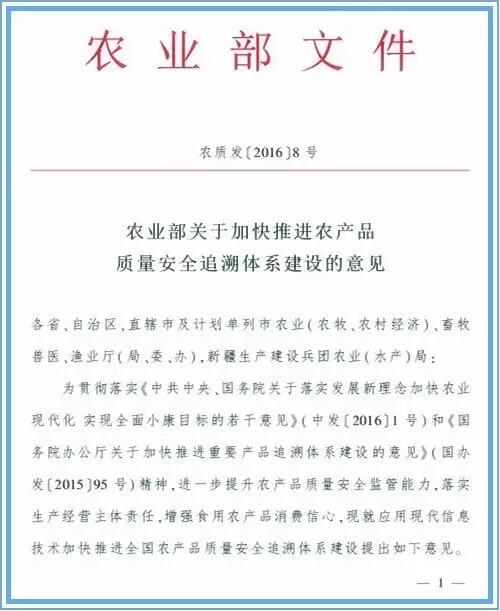 连国家农业部都跟着产品追溯体系走...