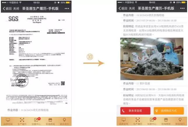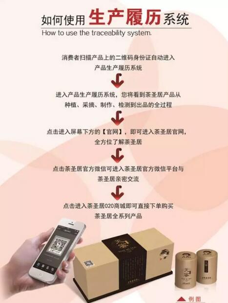 同时,消费者可以扫描产品包装上的二维码,就会显示出该产品的生产履历,详细了解茶园基地情况,茶叶种植、生长、制作的环境,这样透明化的过程提升了茶圣居产品安全性的可信度,让消费者在喝茶的时候就不会产生疑虑,可以绝对的放心。