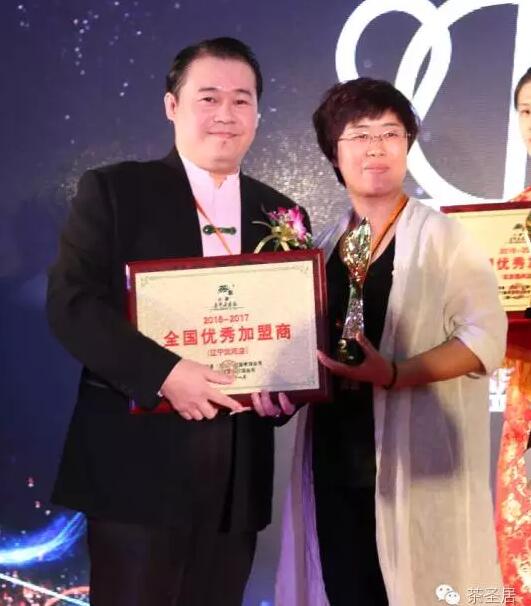 ▲茶圣居董事长与获奖加盟商合影