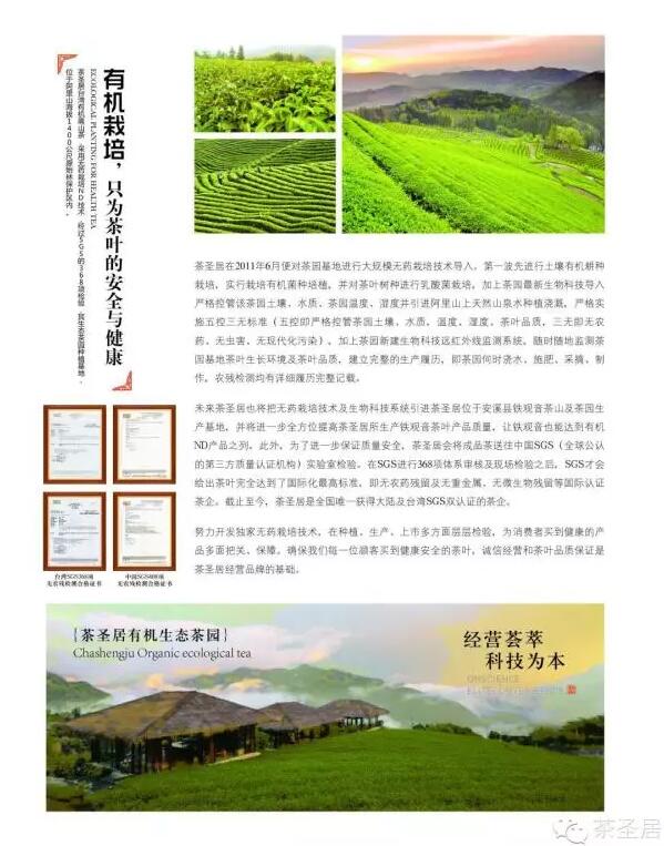同时茶圣居还是大陆首家通过SGS大陆、台湾双认证企业,茶叶产品质量得到了消费者的高度认可。