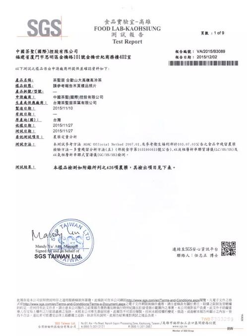 通过二维码扫描出的生产履历清楚显示了产品送检(SGS)的时间,SGS检测是茶圣居茶品生产履历的一部分。