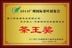 继获得两岸十大金茶奖综合十强冠军后,茶圣居-东方美人茶-天蜜又再次斩获佳绩,于此次广州茶博会及广州博览会荣获双茶王奖。